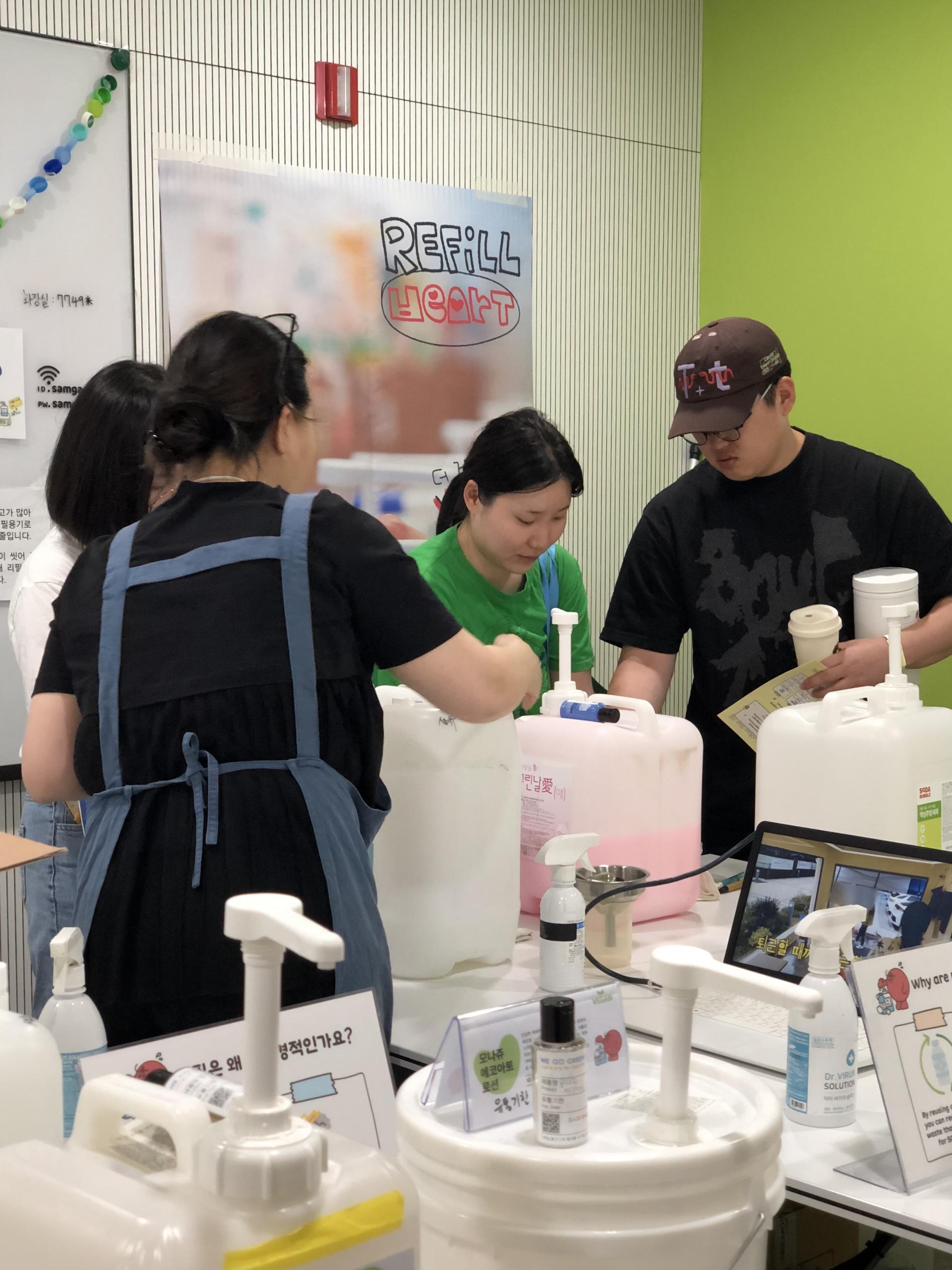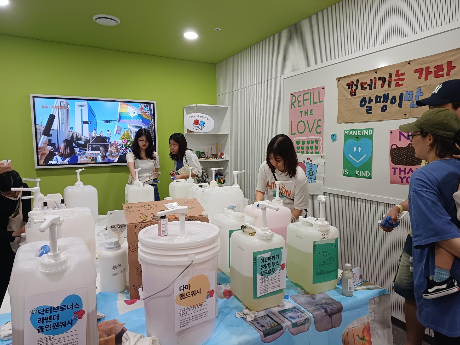 저희 리필스테이션 부스는 줄이 가장 긴 부스 중 하나였고요. 그럼에도 많은 분들께서 즐거워하시며 리필하시는 모습을 볼 수 있었어요. :)
