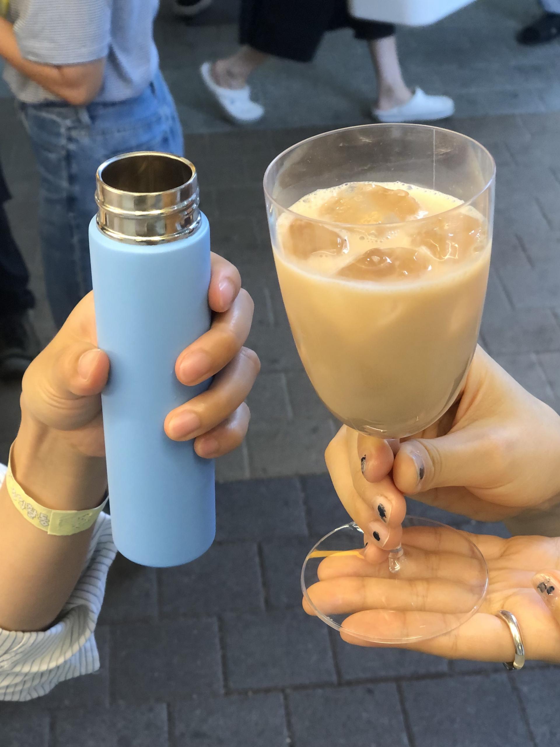 텀블러 대신 와인바 오는 모양새로 다회용 컵을 싸오신 알맹러님들!