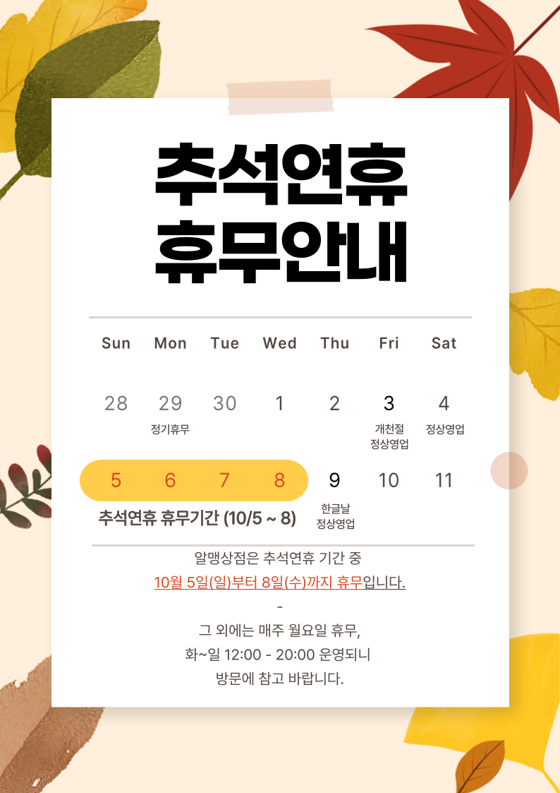 휴무 기간에는 매장운영 및 자원순환 수거 등 모두 쉬어가니 방문에 참고해 주세요👣