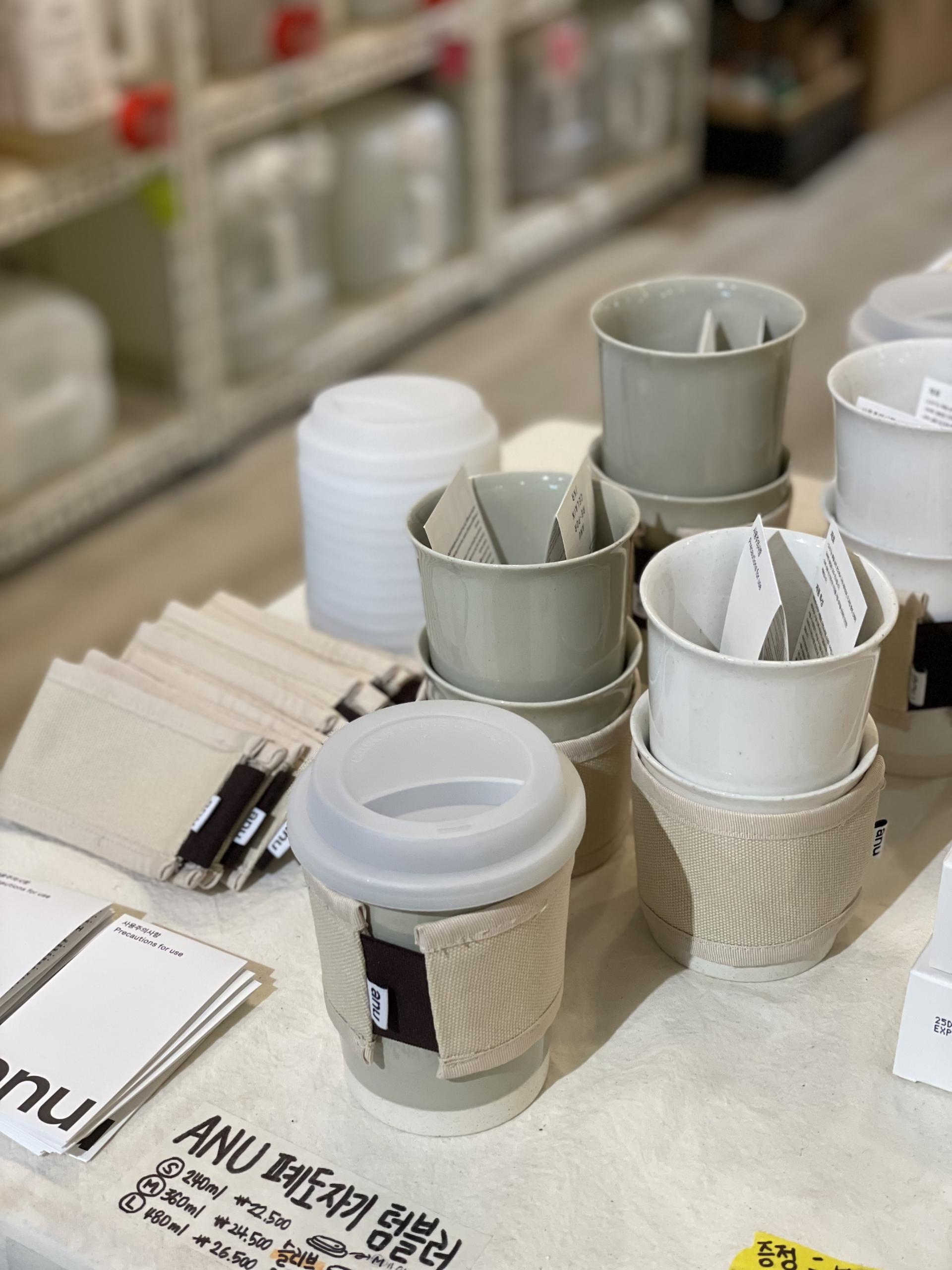 아누의 ‘텀블러 시리즈’는 우리가 가장 자주 사용하는 일회용 컵처럼, 익숙하고 편리한 컵이 되기를 바라면서 만들었다고 합니다. 240 / 360 / 480ml 세 가지 실용적인 용량과, 어디에 두어도 자연스럽게 어우러지는 두 가지 컬러가 있습니다. 알맹상점에서 구매 시 실리콘 뚜껑과 자체 제작한 패브릭 슬리브도 함께 드려요!