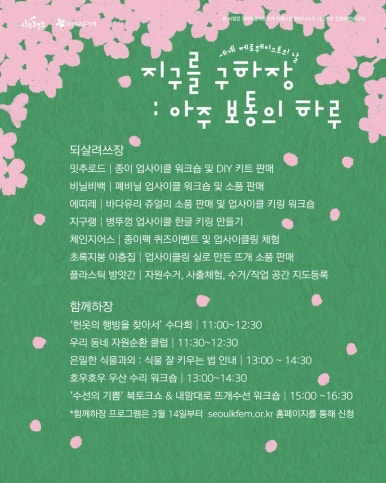 🌸행사 관련 문의는 서울환경연합 02-735-7088 로 연락해주세요.