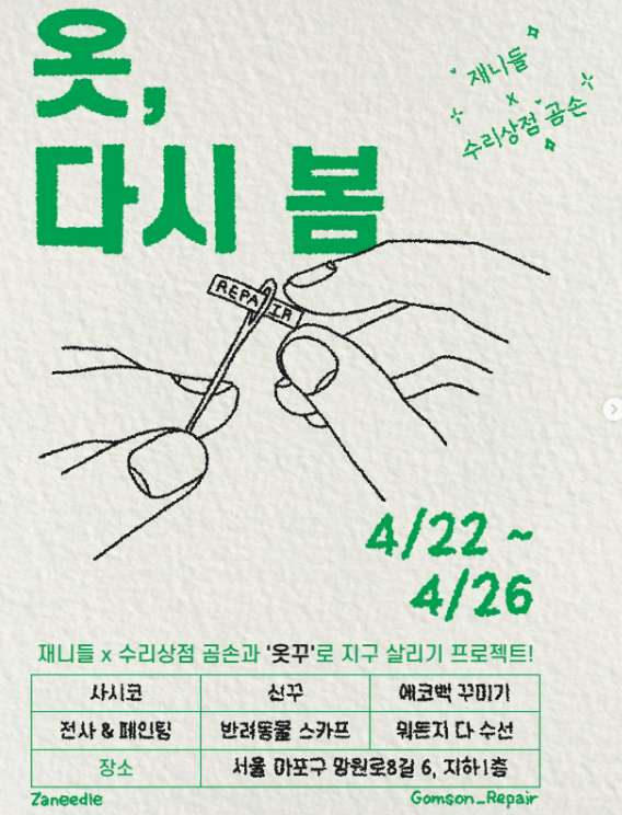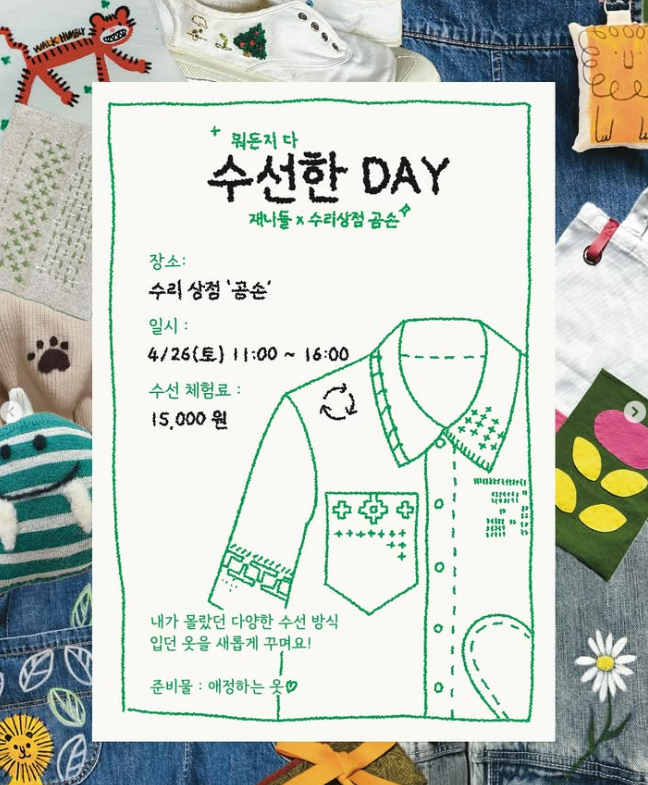 더불어 4.26(토)에는 11-4시 사이에 오셔서 아무거나 수선해보는 수선한 데이가 열려요!